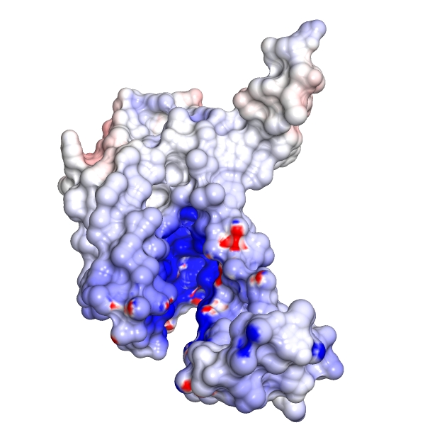 Surface model representations of B. halodurans YidC (3WO6) coloured according to its electrostatic potential
