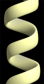 蛋白のへリックス部分のレンダリング例.tuberを1以外にすることで,扁平な断面のチューブにすることができる.Defaultのtype=0では楕円形の断面になる.図を見ても分かるように,tuber<1を使用するケースはあまりないだろう.
