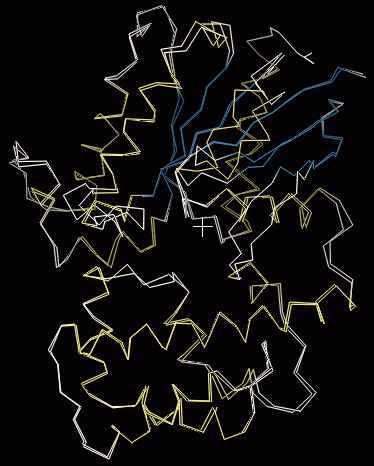 分子の構造変化(morphing)異なる構造をもつ2つの同一分子間の変化(変形=morphing)をアニメーションとして表示する場合に使用します. CueMol2.2では,線形補間によるmorphingが使用できます. 線形補間によるmorphingでは,localなconformation changeをアニメーションすることが可能です. 本項目で説明するSample scene fileが以下からダウンロードできます.