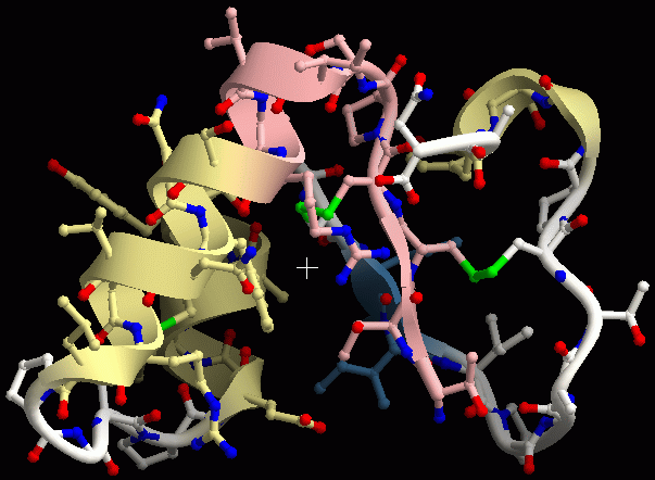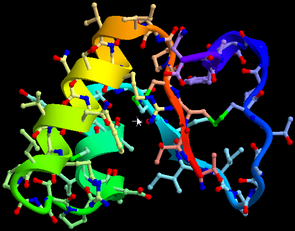で全体的に統一した着色の図が作成できます. その他修飾子の指定分子色($molcol)も,他の色表記と同様に修飾子をつけて色を変化させることができます. 例えば,炭素の色を主鎖の色より薄く(あるいは濃く)したい場合は,CPK coloringの炭素色のところに $molcol{mod_s:-0.5}
