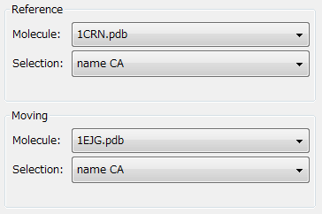 となります. 特に,Reference/MovingのSelectionの指定ですが, CueMol1.1の場合と同様に,