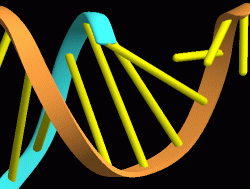 DetailBallstick rendererのdetail値と同様に,残基の表示の緻密さを表す.大きいほど滑らかな表示になるがポリゴン数が増え処理が重くなる.POV-Rayでのrendering時には,Edge renderingを使用する場合を除き,無視される. Base size残基表示の大きさを指定する.Stick状の部分のcylinderの半径をangstrom単位で指定する. Base thickBase type=detail1, detail2の表示において,板状に表示されたbase等の厚さを指定する. 100%だと板の厚さとstickの太さが同じになり上図のような表示になるが,たとえば50%にすると板の厚さは半分になり,下図のような表示になる(detail2の場合). TubeタブNucl rendererの主鎖表示はtube rendererと同じであるため, プロパティーのTubeタブはtube rendererの設定と同じになっています. ここではnuclで変更する必要がありそうな項目についてのみ説明します. 詳しくはTube rendererの設定を参照してください.