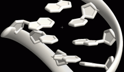 塩基対の判定現在のCueMol (ver 2.2)では,PDBファイル読み込み時に構造がチェックされ, ある2残基がワトソンクリック塩基対を形成していると判定されると,自動的に塩基対を形成しているとマークされます. 塩基対の判定は,水素結合距離と2塩基同士の平面性が考慮されています. Nucl rendererはPDB読み込み時に塩基対を作成していると判定されたものについてのみ塩基対表示を行います. 現バージョン(ver 2.2)では, 手動により指定残基について強制的に塩基対を作らせたり,あるいは塩基対を削除させたり等を行うことはできません. |